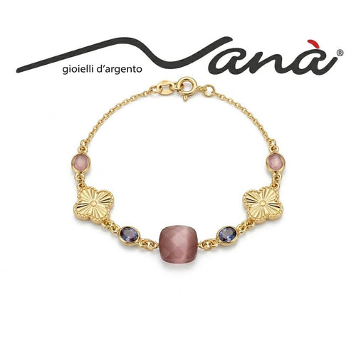 Bracciale Argento 925 Dorato con Pietre e Quadrifoglio
